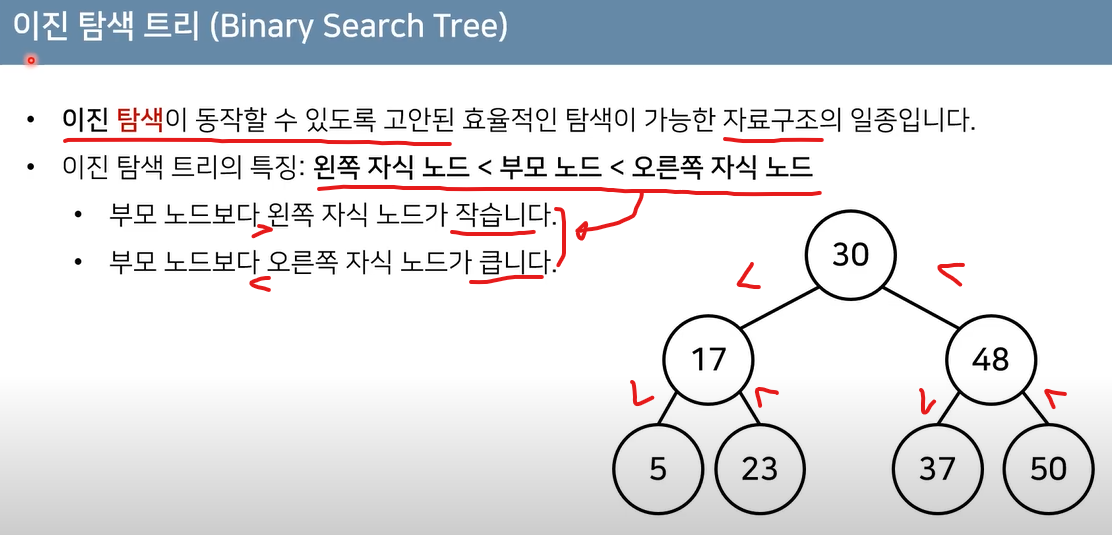 여기에서는 이진 탐색 트리를 어떻게 만드는 건지는 생략하고