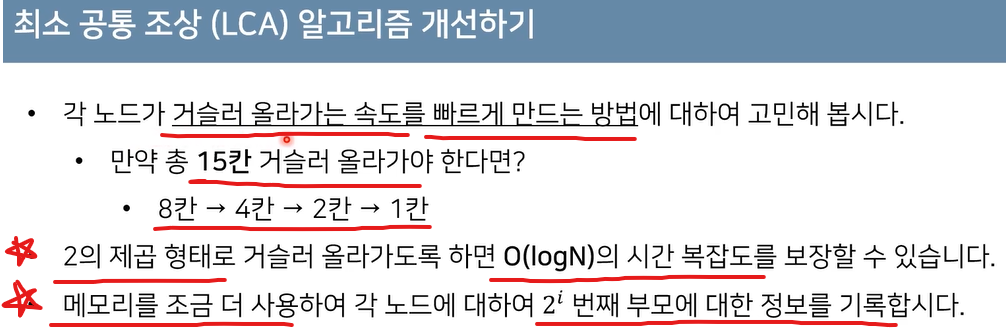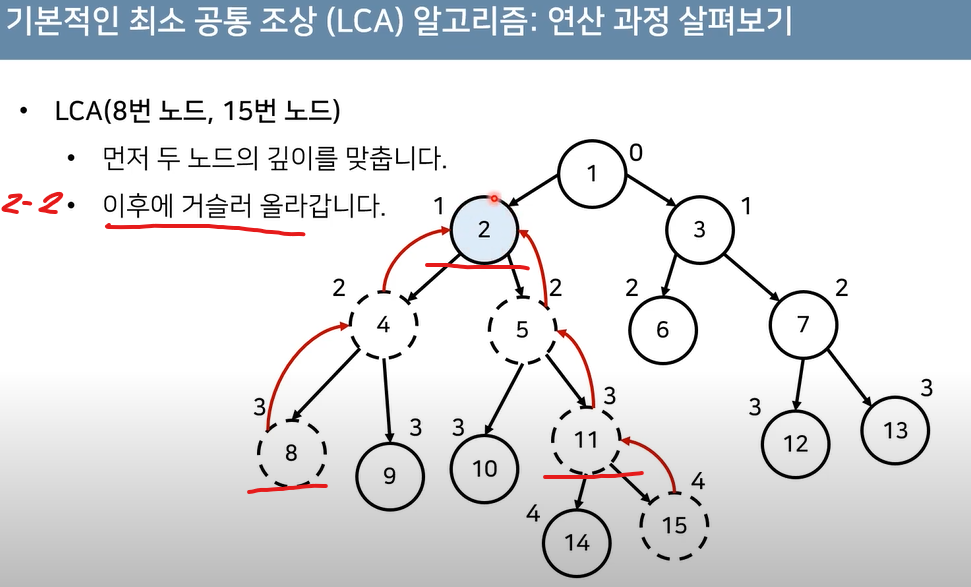 거슬러 올라갈 때는 가능하면 빠르게 2의 제곱꼴로 올라가게 한다