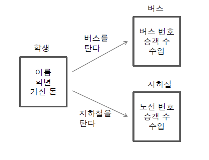 bus.take(1000); // 학생이 버스를 타서, 1.버스는 1000원을 벌고,