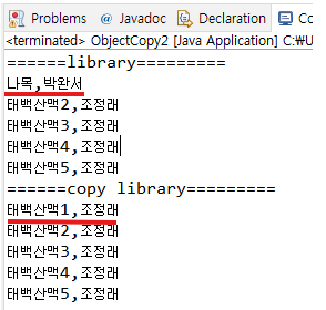 System.arraycopy(library, 0, copyLibaray, 0, 5); // 객체 얕은 복사