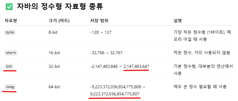 자바의 정수형 자료형 종류 본문