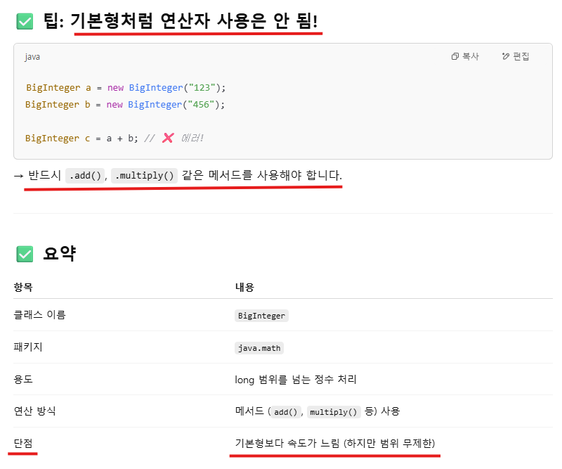 BigInteger는 자바에서 아주 큰 정수(long보다 큰 값)를 다루기 위해 사용하는 클래스입니다.