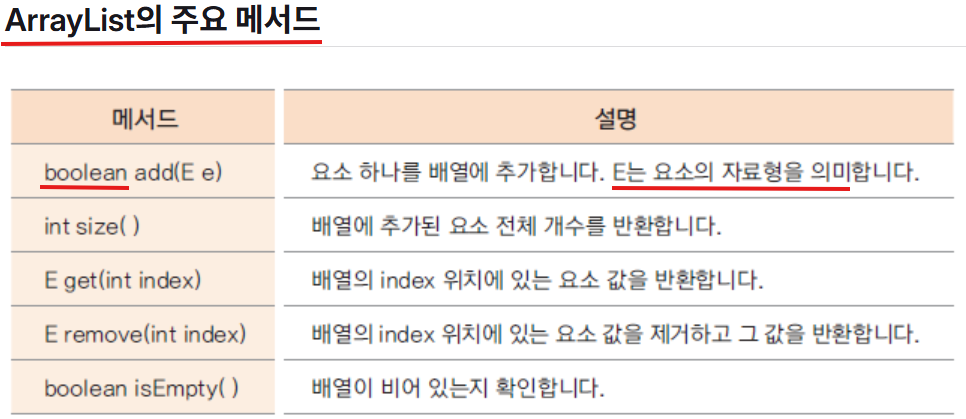 ArrayList< > 에서 < > 안에 어떤 객체를 넣을 거냐를 지정한다