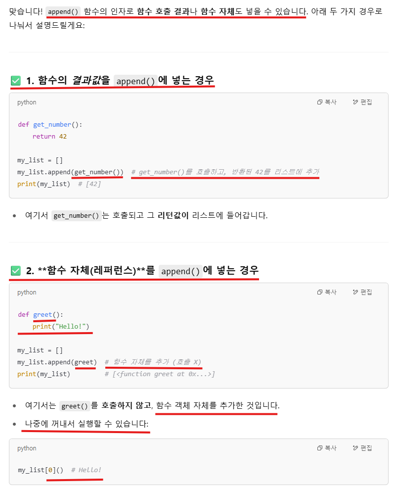 append 함수 안에는 리스트, 숫자, 문자열, 심지어 함수도 들어갈 수 있다.