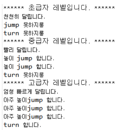 level.showLevelMessage(); // 여기서 중급자, 고급자입니다 출력