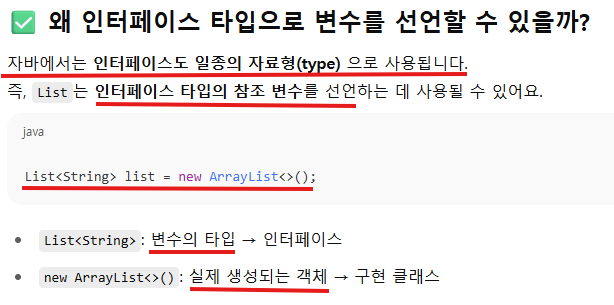 List 인터페이스는 변수 타입처럼 선언할 수 있다 본문