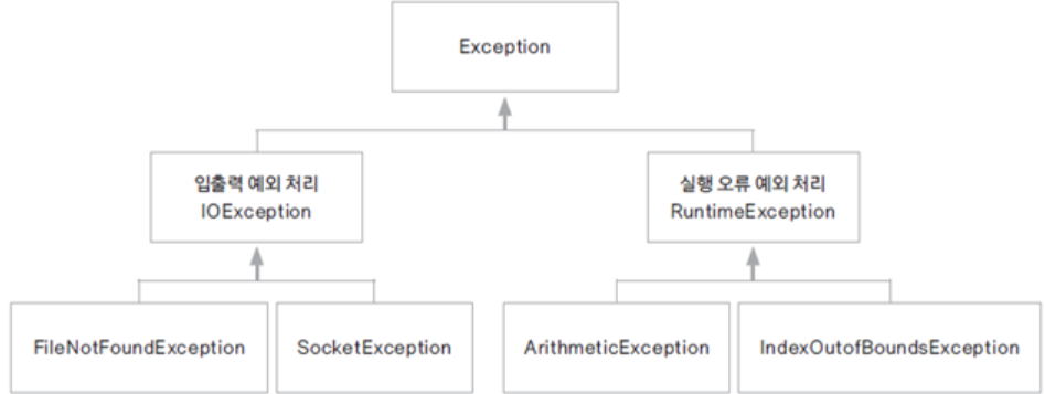 - 모든 예외 클래스의 최상위 클래스는 Exception 클래스