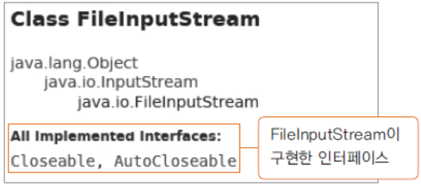 - FileInputStream의 경우에는 AutoCloseable을 구현하고 있음