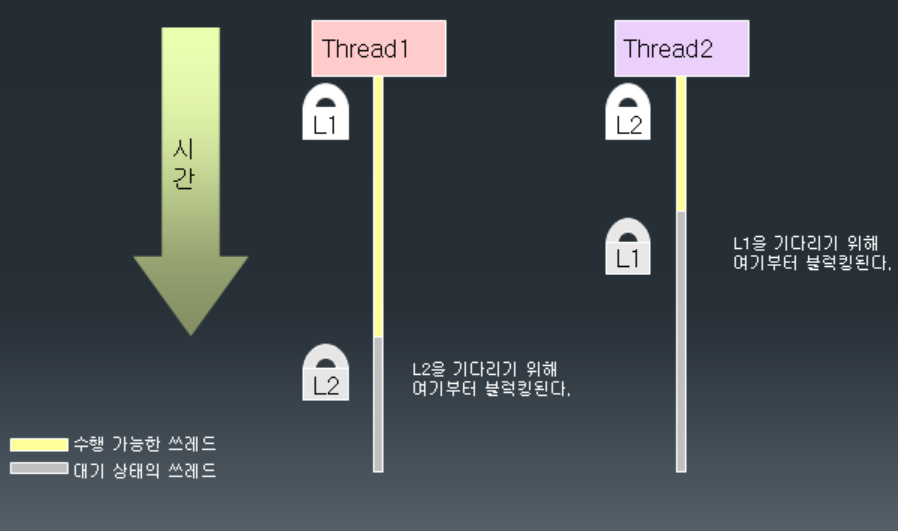 - 동기화를 잘못 구현하면 deadlock에 빠질 수 있다.