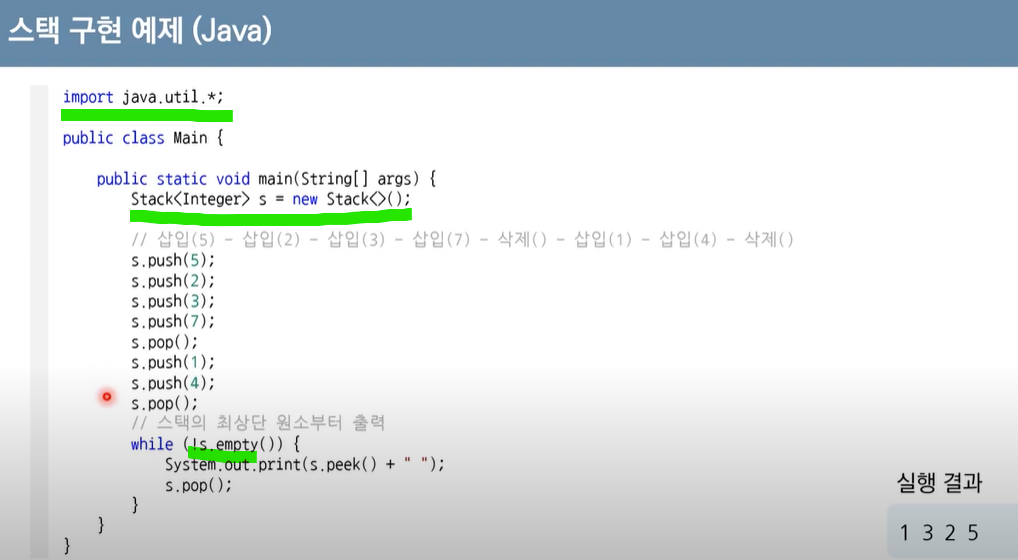 자바 스택 : 라이브러리 활용해서 push, pop, peek 함수 사용