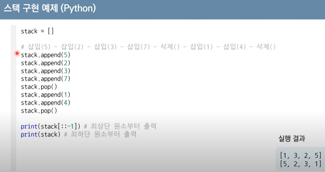 파이썬 스택 : 리스트와 파이썬 내장함수 append, pop 사용