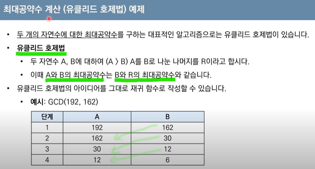 재귀함수 예제 : 팩토리얼, 최대공약수 계산
