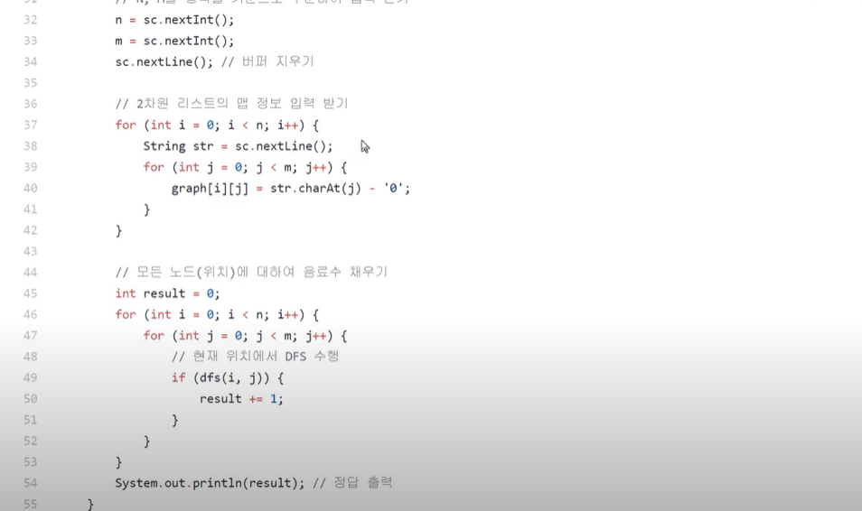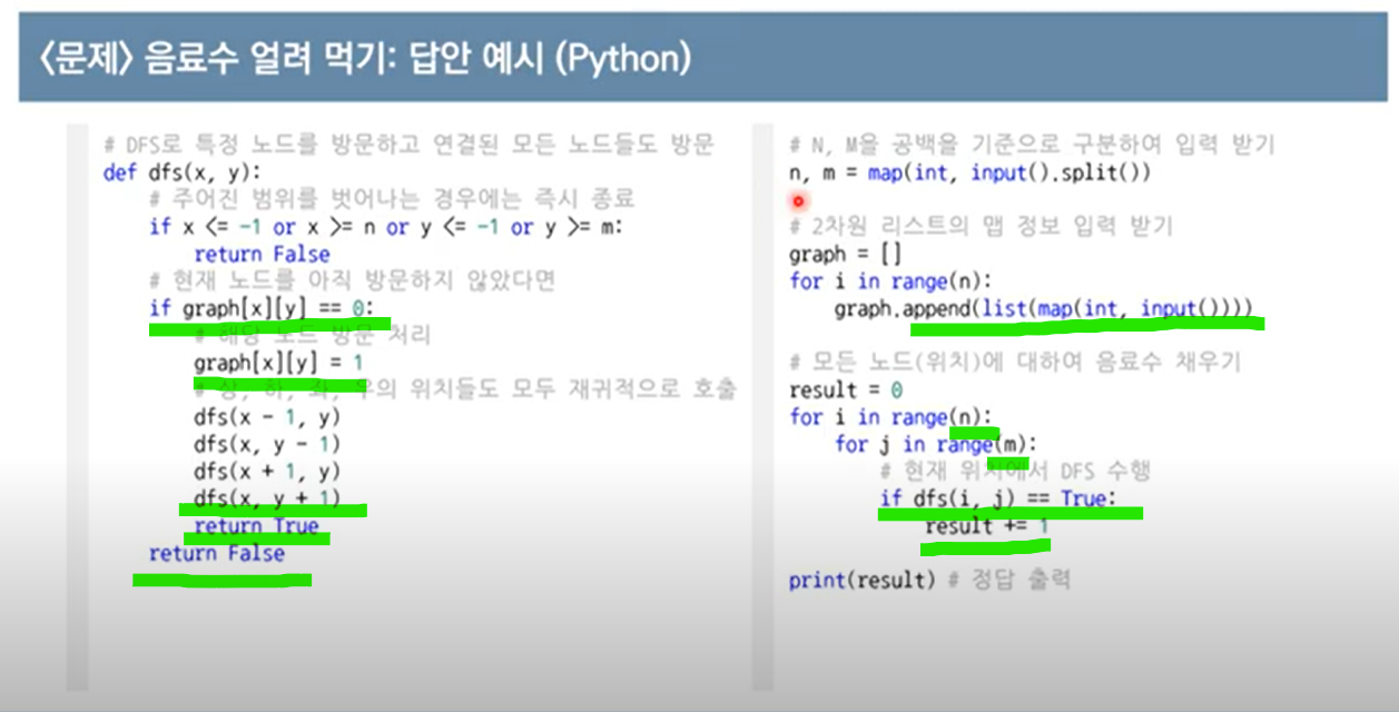dfs(x-1, y) 포함 4개 방향 코드 --> 코드 수행하고 혼자 반환하고 끝 --> [ 이 반환은 dfs(i, j)의 반환이 아니기에