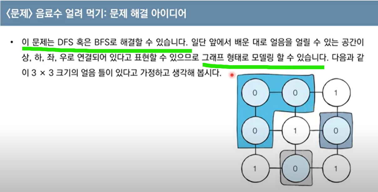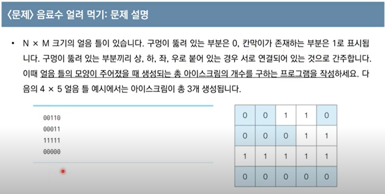 대신 인접 노드의 값이 0이면 1로 바꾸는 효과가 있음 --> 그래서 그래프 형태에서 0이 인접한 덩어리를 1번만 셀 수 있다