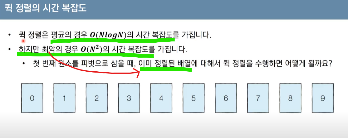 퀵 정렬은 이미 정렬된 배열에서 최악의 시간 복잡도를 가진다
