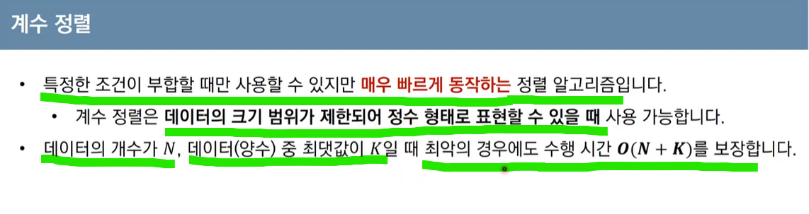 계수 정렬은 데이터를 정수 형태로 표현할 수 있을 때 사용 가능하다.