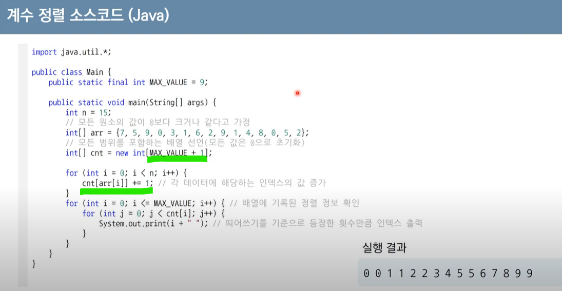 계수 정렬은 가장 작은 데이터부터 가장 큰 데이터까지의 모든 범위를 포함할 수 있는 크기의 배열을 만들어야 하기