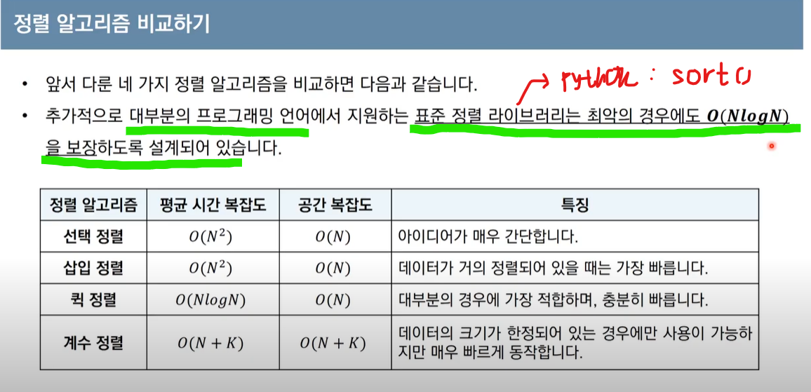 파이썬에서 제공하는 기본 정렬 라이브러리는 ( sort() )