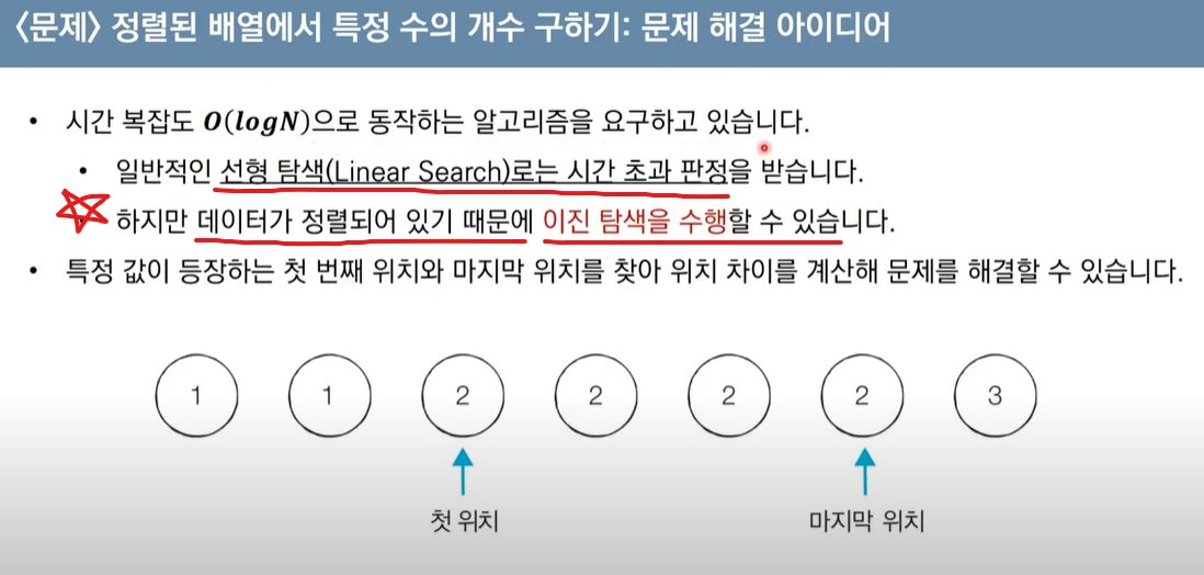 다른 하나의 이진 탐색은 마지막 위치를 찾게 만들면 된다