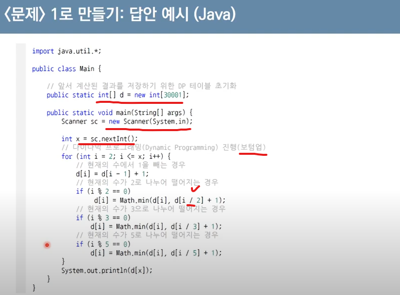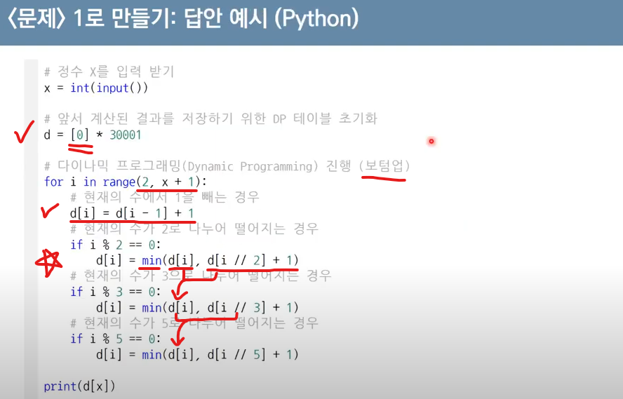 d[i] = d[i-1] + 1 은 모든 수(i) 에서 적용할 수 있기 때문에 맨 위에 배치