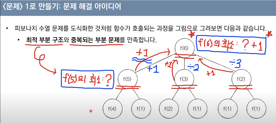 그래서 f(5), f(3), f(2) 이 세개의 값 중 최소를 찾으면 f(6) 값의 최소를 찾을 수 있다.