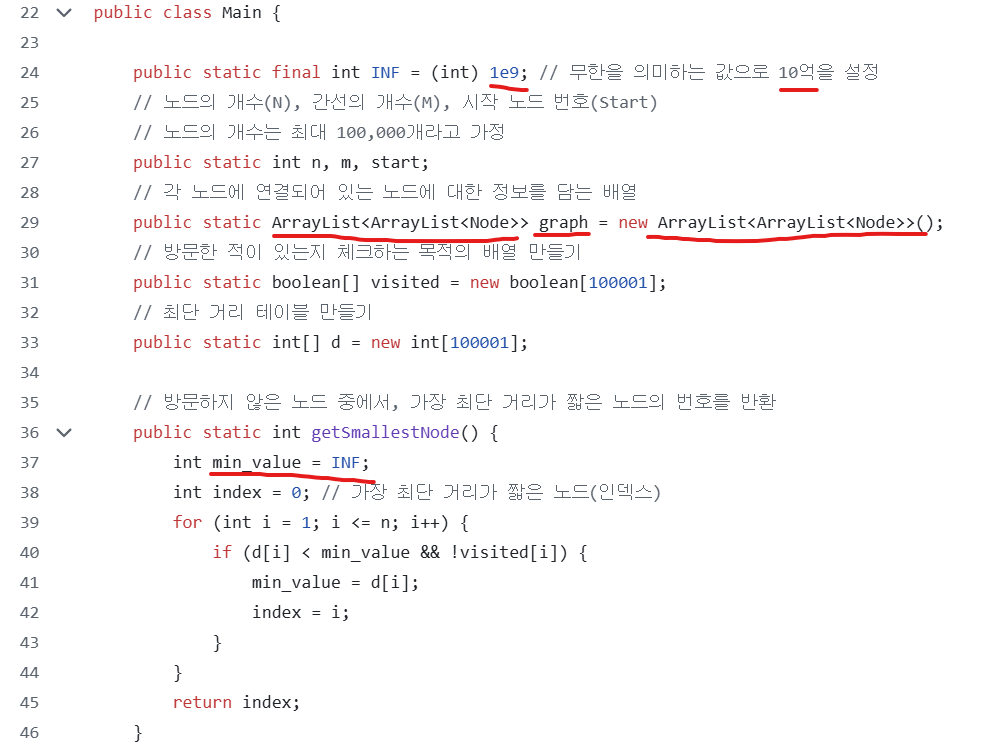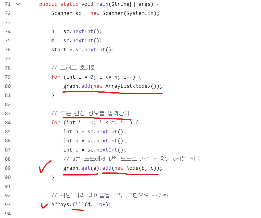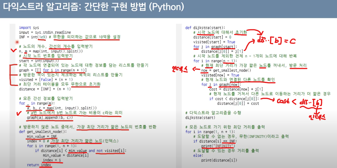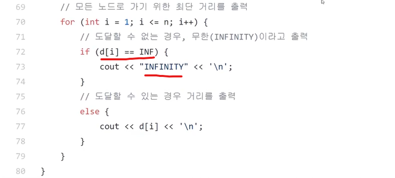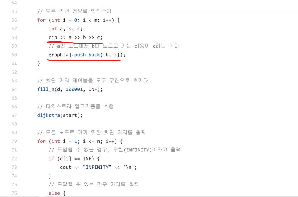 최단 거리 테이블을 초기화할 때 다른 모든 노드까지 가는 비용은 무한으로 설정하고