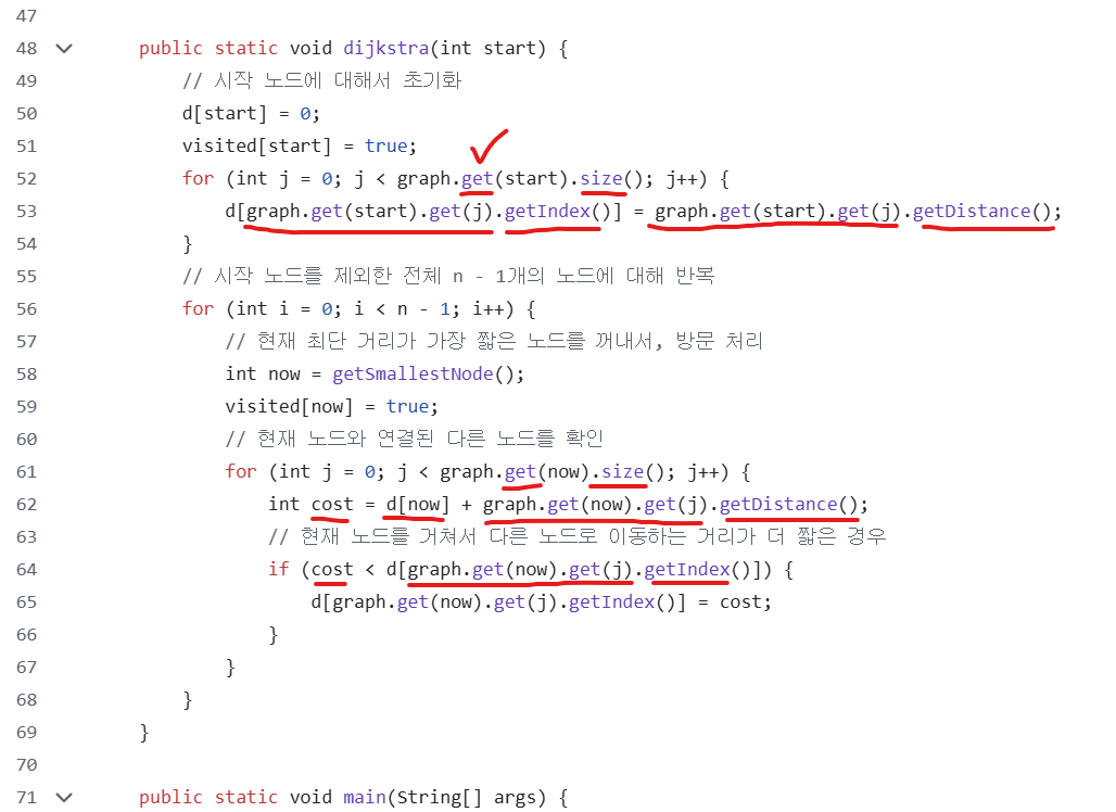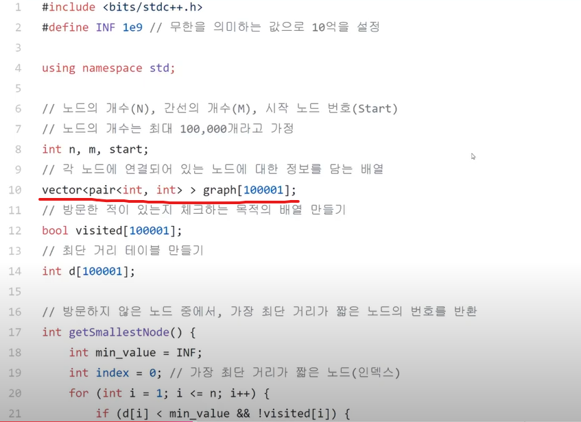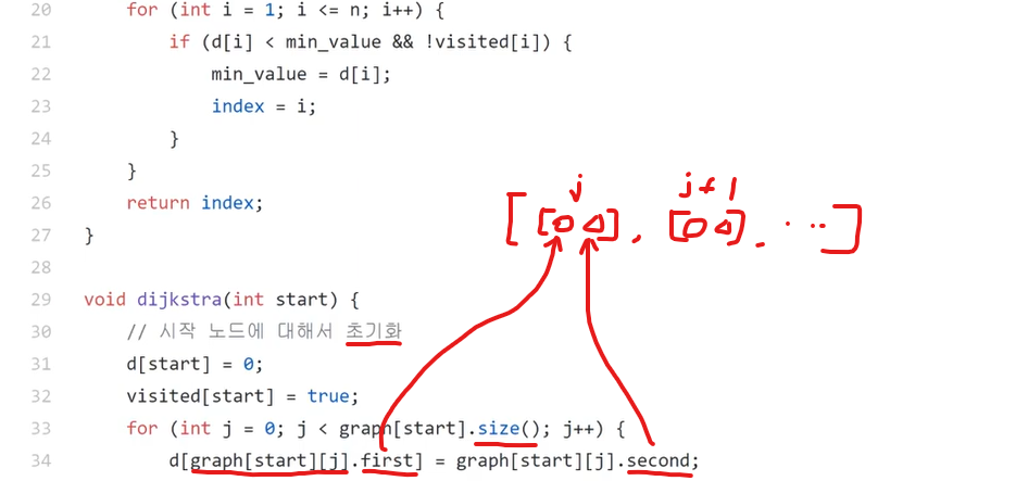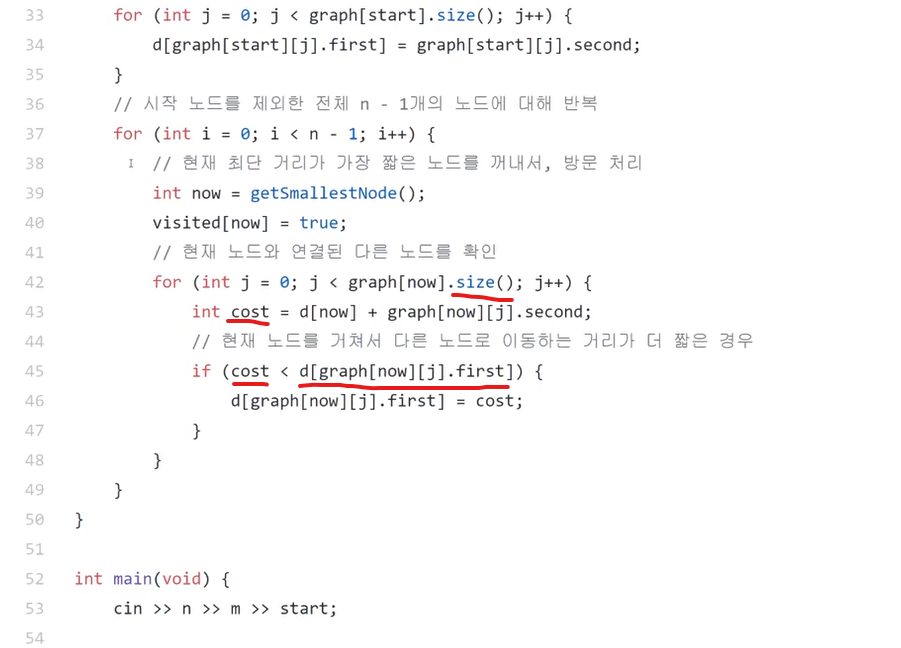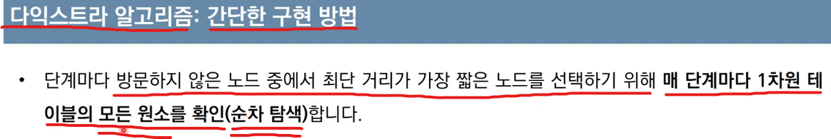 다음 단계로 넘어갈 때 아직 방문하지 않은 노드 중에서 최단 거리 비용이 가장 작은 노드를 선택해야 한다
