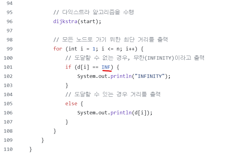 자기자신에 대한 노드는 0으로 설정한다 자기자신에서 자기자신으로 가는 비용은 0이라고 볼 수 있기 때문이다