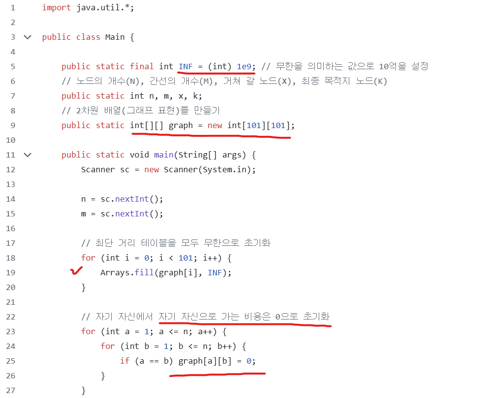 N의 크기가 500 이하이므로 플로이드 워셜 알고리즘을 사용할 수 있다
