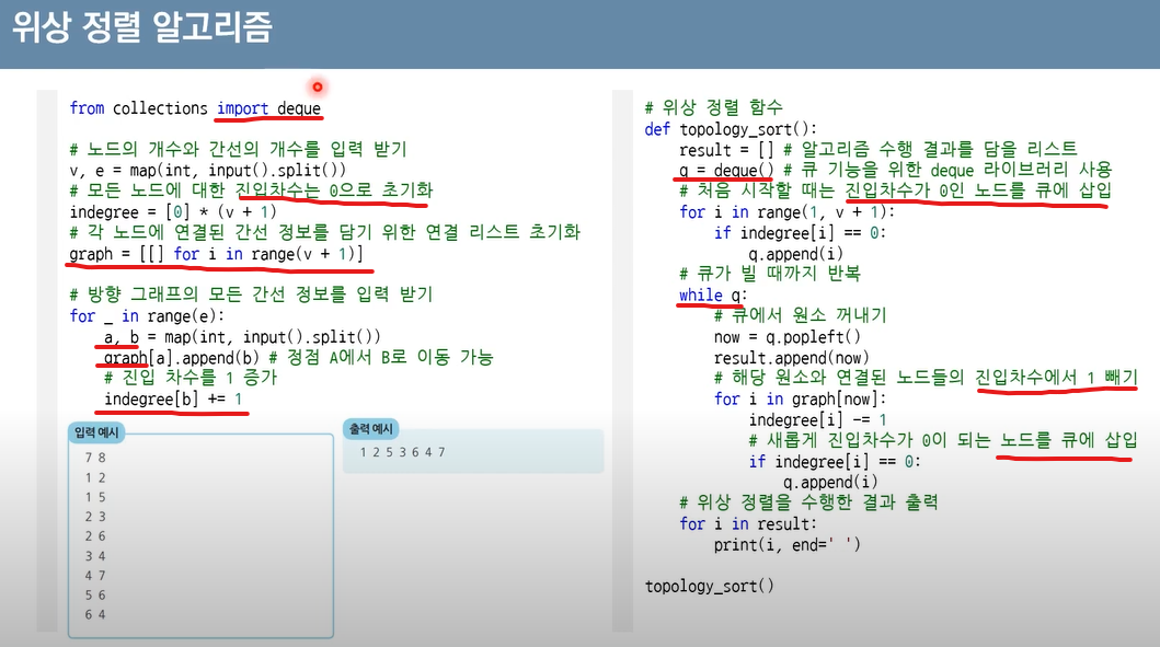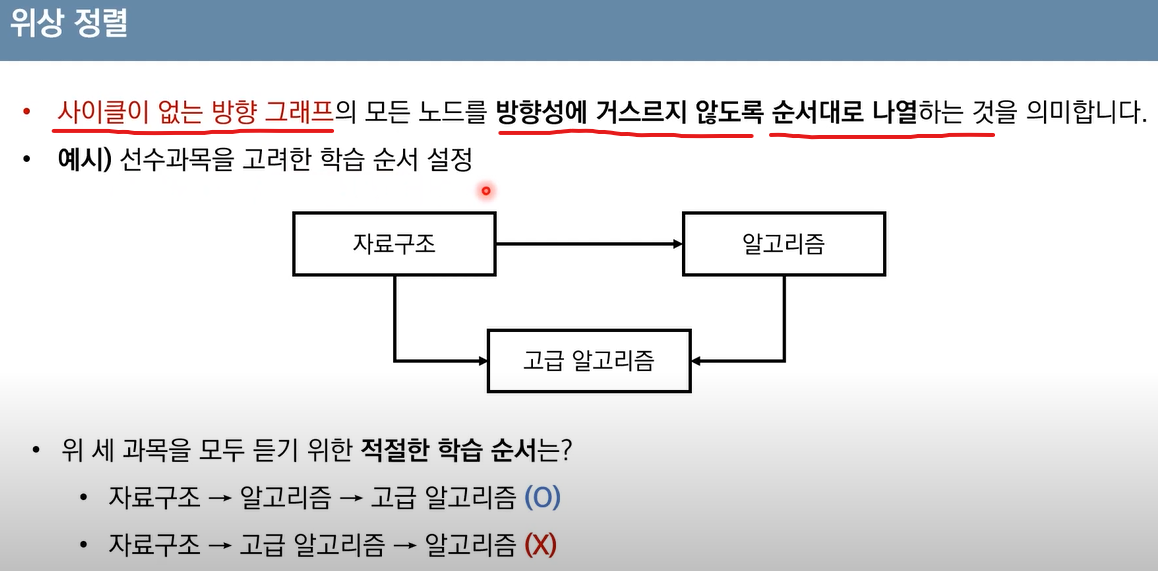 위상정렬 알고리즘은 DFS, 큐를 이용해서 구현할 수 있다