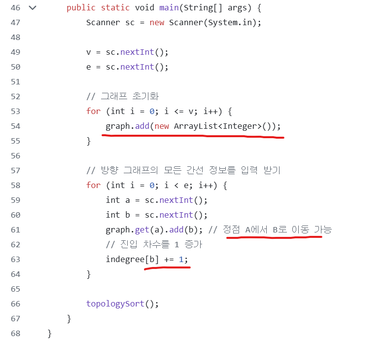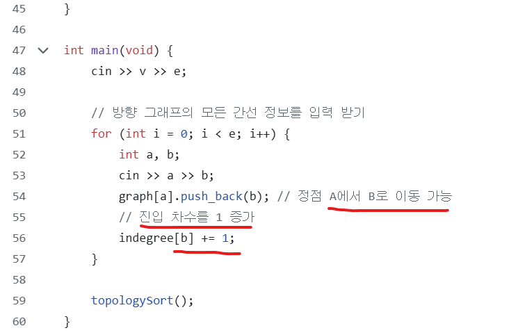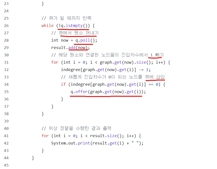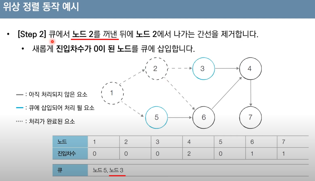 지금과 같이 설계한 경우 사이클에 포함되어 있는 모든 노드는 큐에 들어갈 수 없기 때문에 위상 정렬을 수행할 수 없다