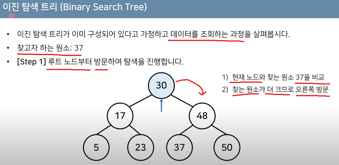 여기에서는 이진 탐색 트리를 어떻게 만드는 건지는 생략하고