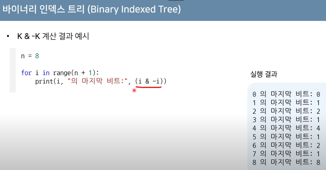 바이너리 인덱스 트리에서는 "0이 아닌 마지막 비트를 찾는 과정"이 효과적으로 사용된다