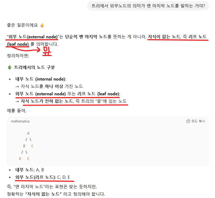 외부노드는 자식 노드가 전혀 없는 노드를 말한다.